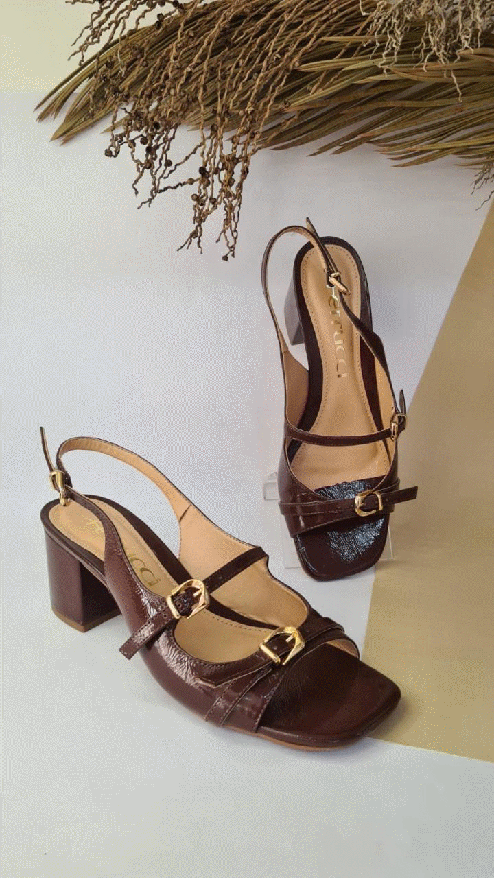 SANDALIA SALTO BLOCO VERNIZ CAFE FERRUCCI
